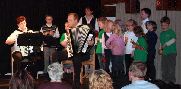 Dabei standen in der ersten Konzerthälfte die jüngsten Akkordeon- und Melodikaspieler im Mittelpunkt. Ein besonderes Ereignis war der gemeinsame Auftritt der Melodikakinder mit den schon fortgeschritteneren Akkordeonspielern, da einige der Kleinsten erst vor zwei Monaten mit dem Instrumentalunterricht begonnen hatten. Dementsprechend freute sich der erste Vorsitzende Daniel Köhler darüber, dass der Verein durch das „Frische Blut“, welches in das Akkordeon-Orchester strömt, sicher auch noch einige weitere Jahrzehnte bestehen könne.